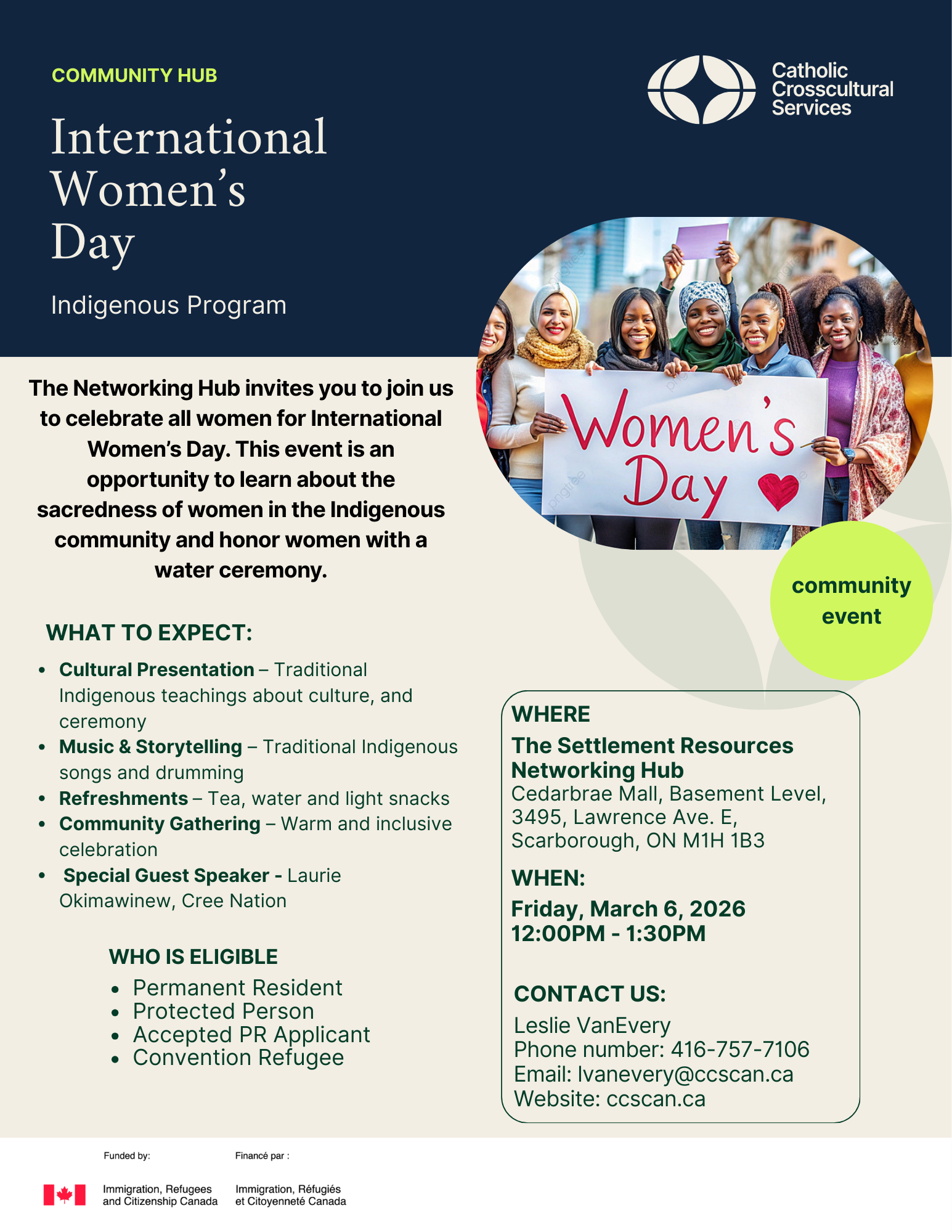Join us at The Networking Hub as we celebrate International Women’s Day and honor the strength, wisdom, and sacredness of women in Indigenous communities. This special community event will feature a cultural presentation, traditional music and storytelling, a water ceremony, and a guest speaker, along with light refreshments. Come together in a warm and welcoming space to learn, connect, and celebrate the remarkable women who inspire and uplift our communities.